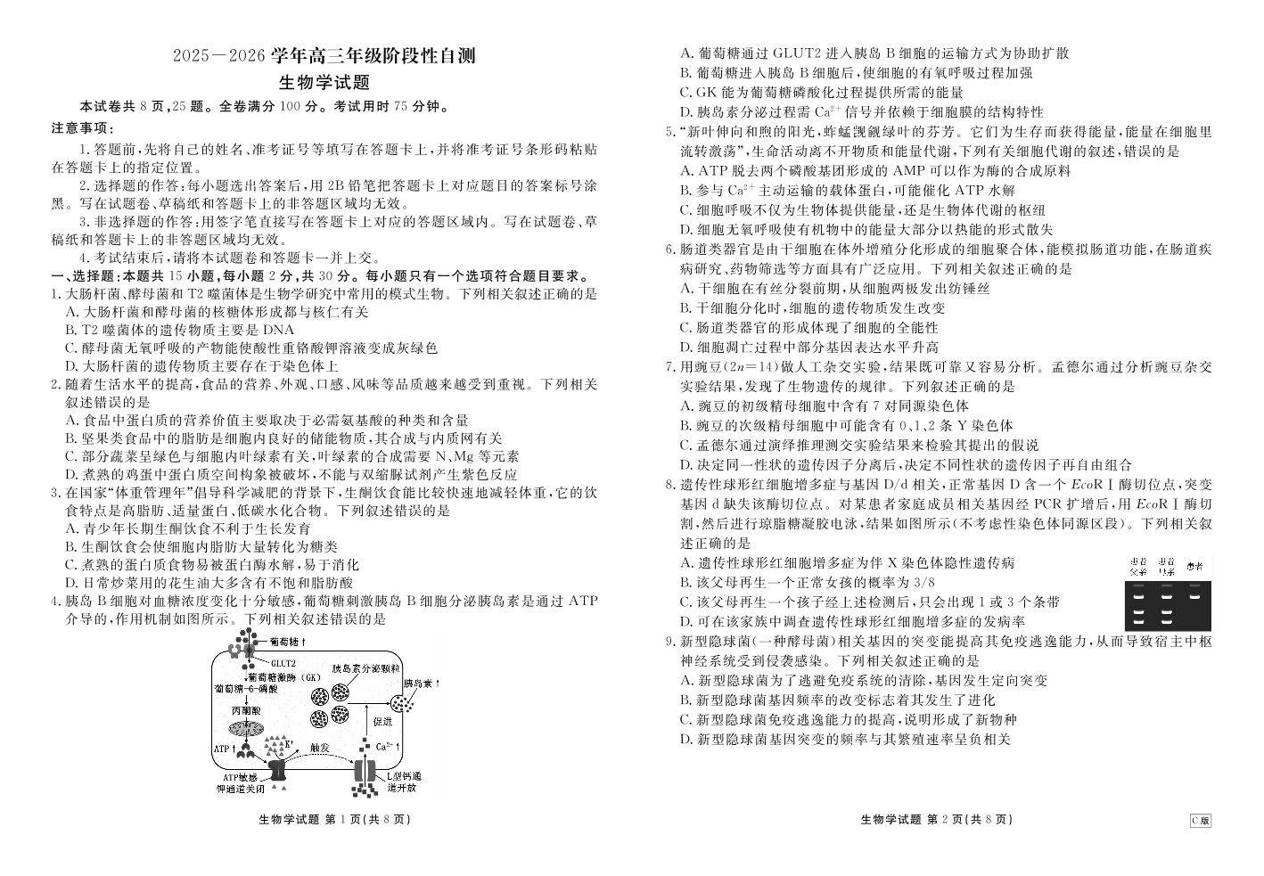 高三生物--内蒙古衡水金卷2026届高三上学期12月阶段性自测