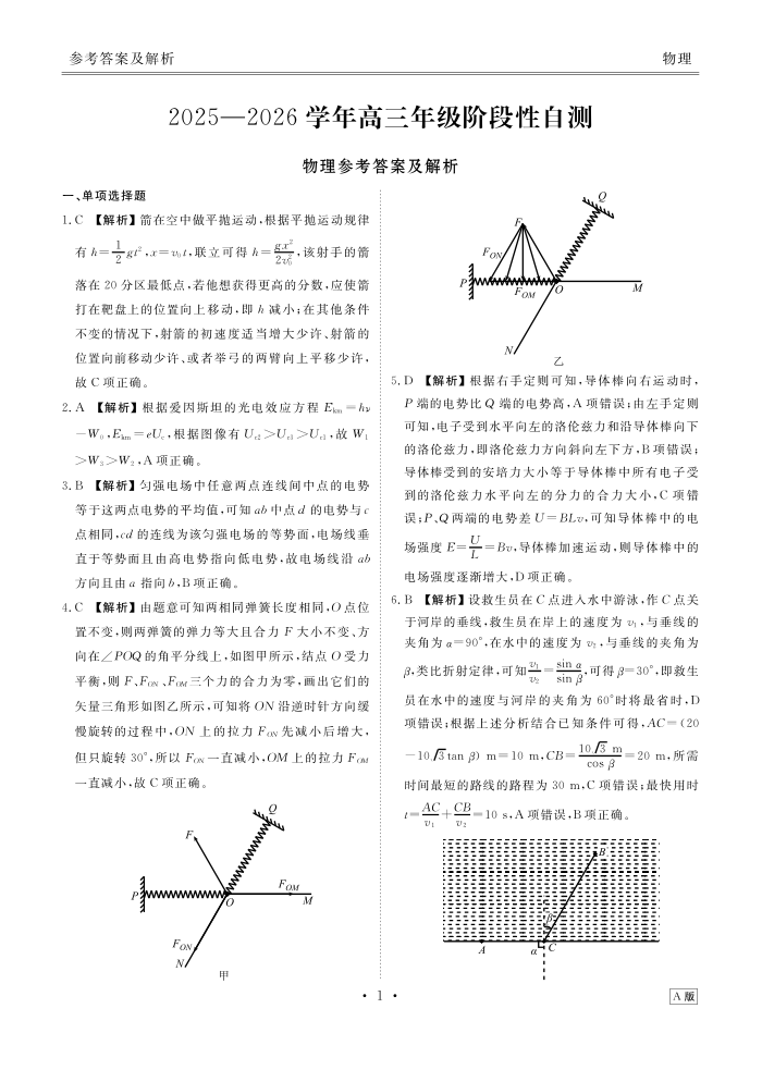高三物理答案--陕晋青宁衡水金卷2026届高三上学期12月阶段性自测