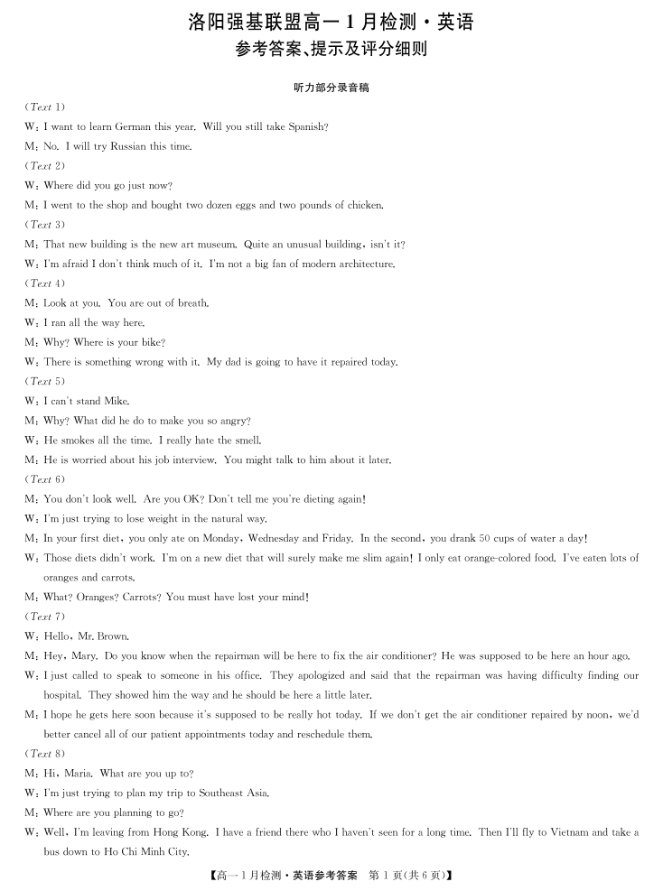 高一英语答案--河南省洛阳市强基联盟2025-2026学年高一上学期1月检测