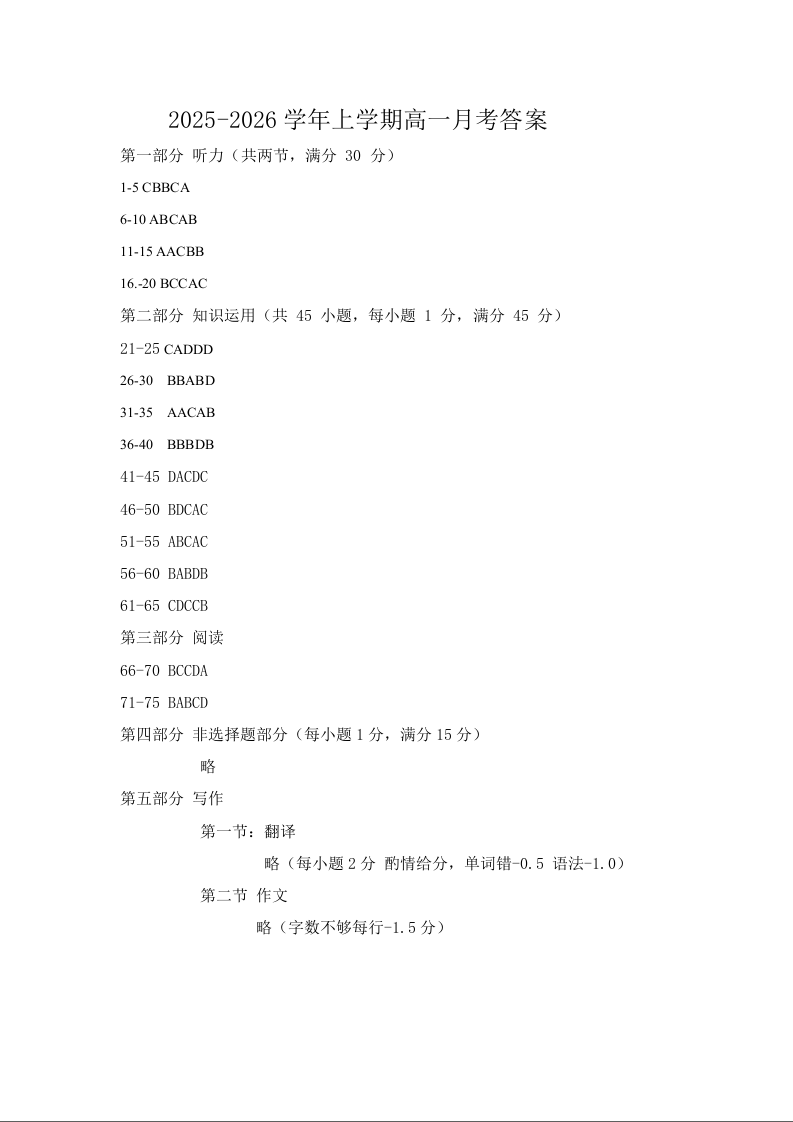 高一日语答案--河南省洛阳市强基联盟2025-2026学年高一上学期1月检测