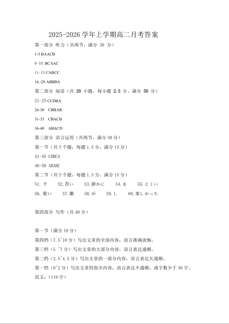 高二日语答案--河南省洛阳市强基联盟2025-2026学年高二上学期1月检测
