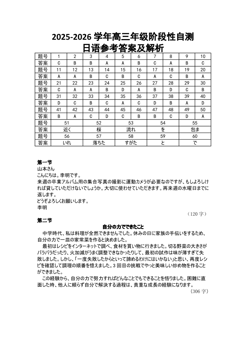 高三日语答案--陕晋青宁衡水金卷2026届高三上学期12月阶段性自测