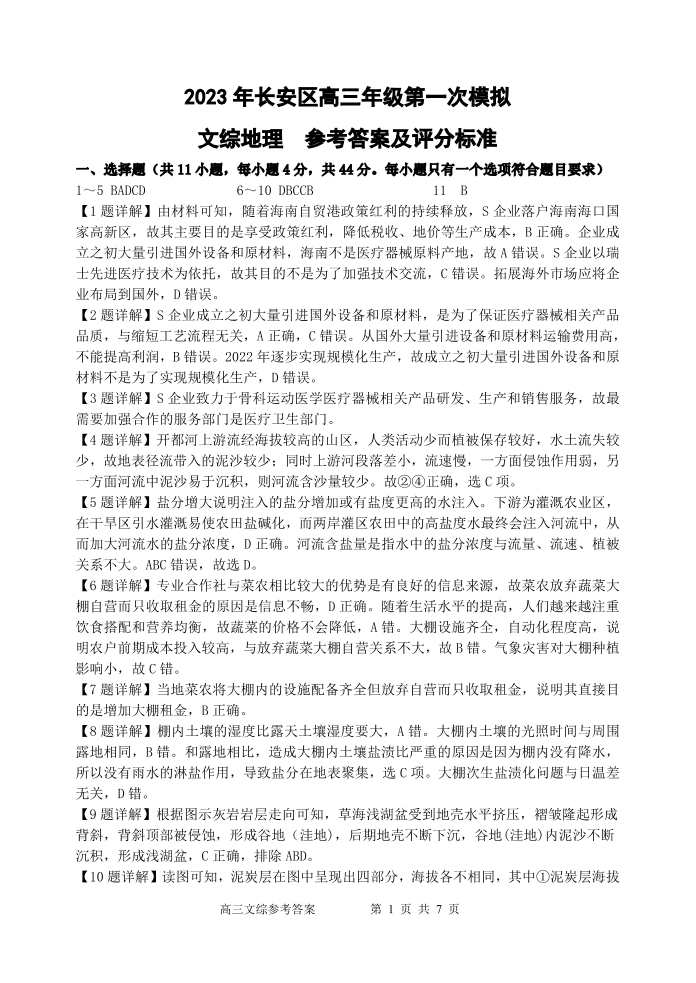 高三文综答案--陕西省西安市长安区2023届高三第一次模拟考试
