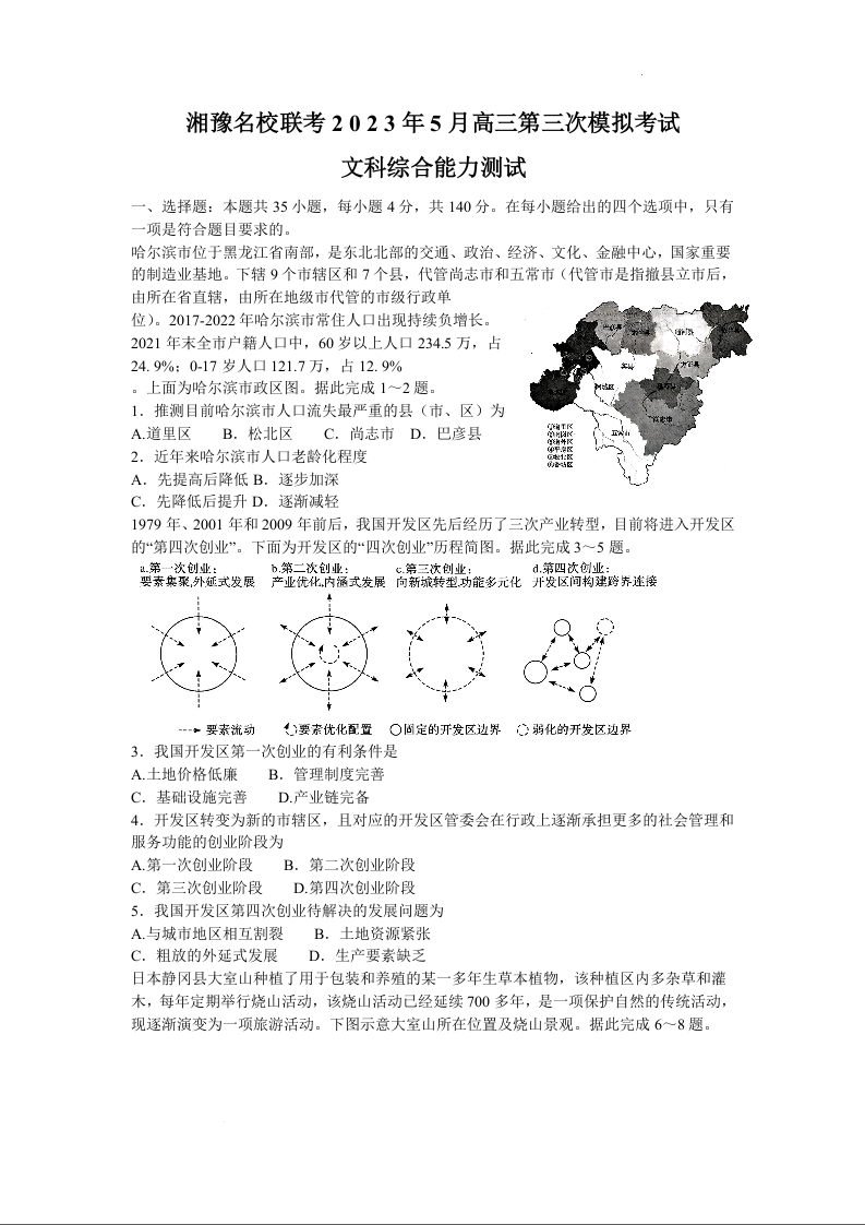 高三文综+答案--湘豫名校联考2023届高三下学期第三次模拟考试(5月)
