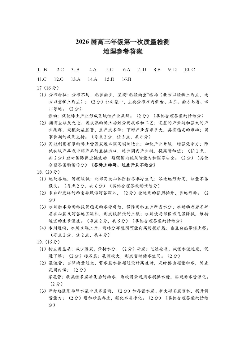 高三地理答案--河南省开封市2026届高三上学期第一次质量检测(开封一模)