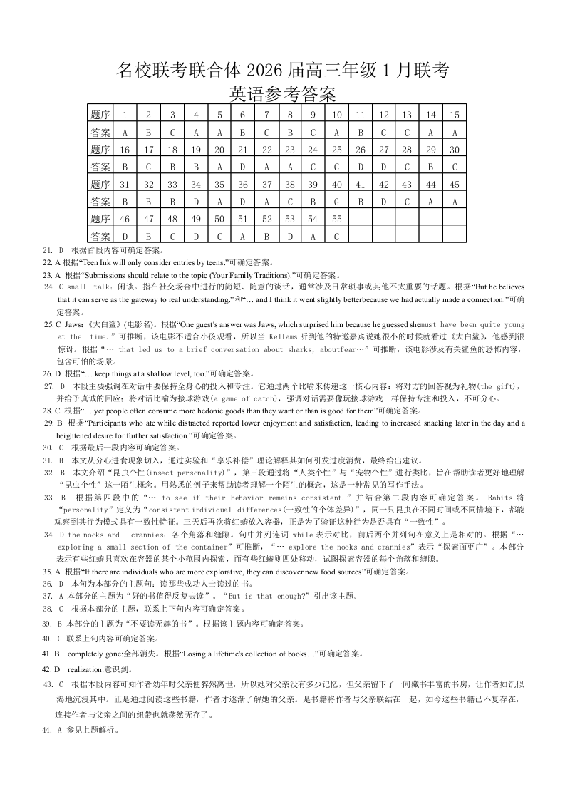 高三英语答案--湖南省名校联考联合体2025-2026学年高三上学期1月联考
