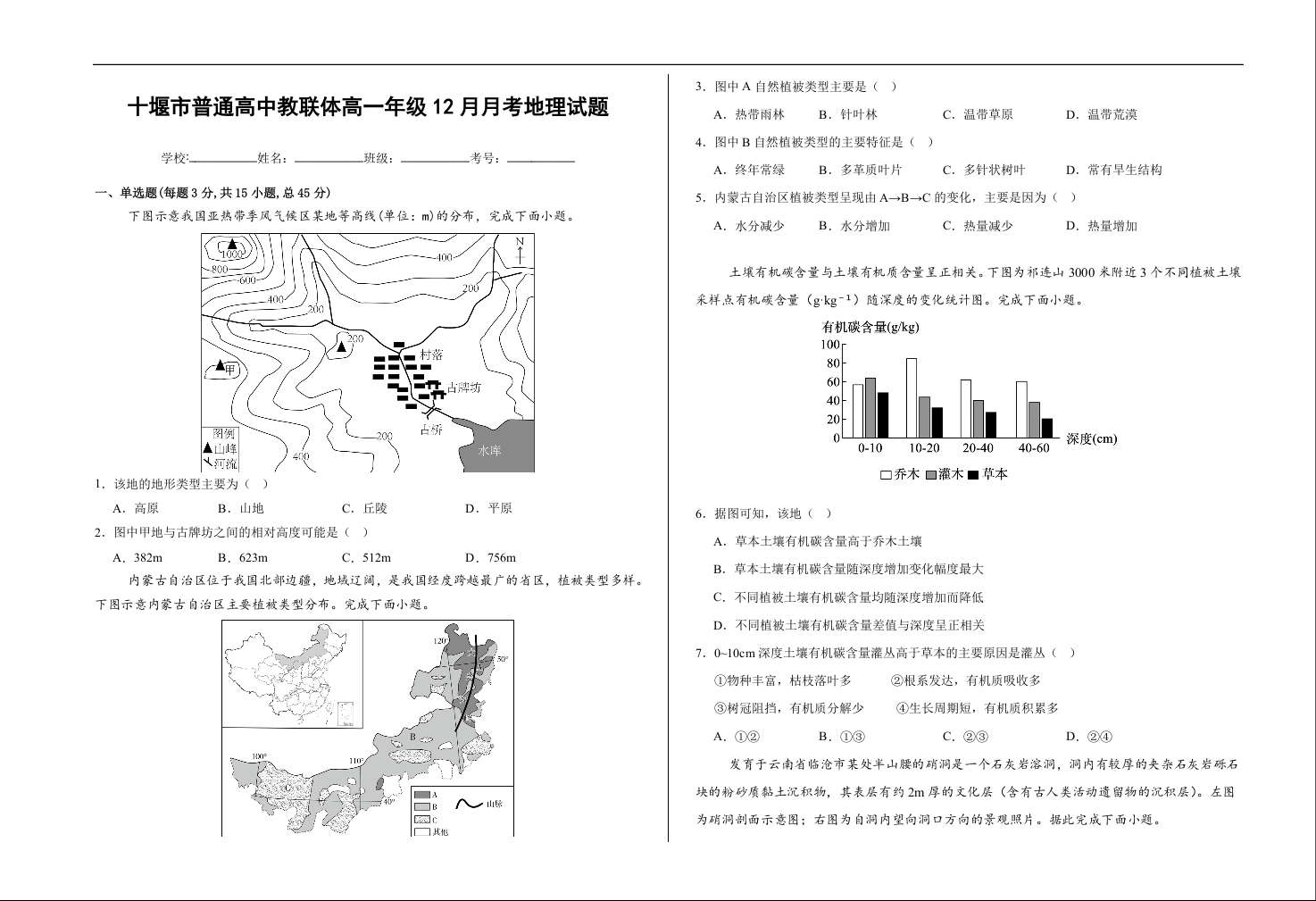 高一地理--湖北省十堰市普通高中教联体2025-2026学年高一上学期12月月考