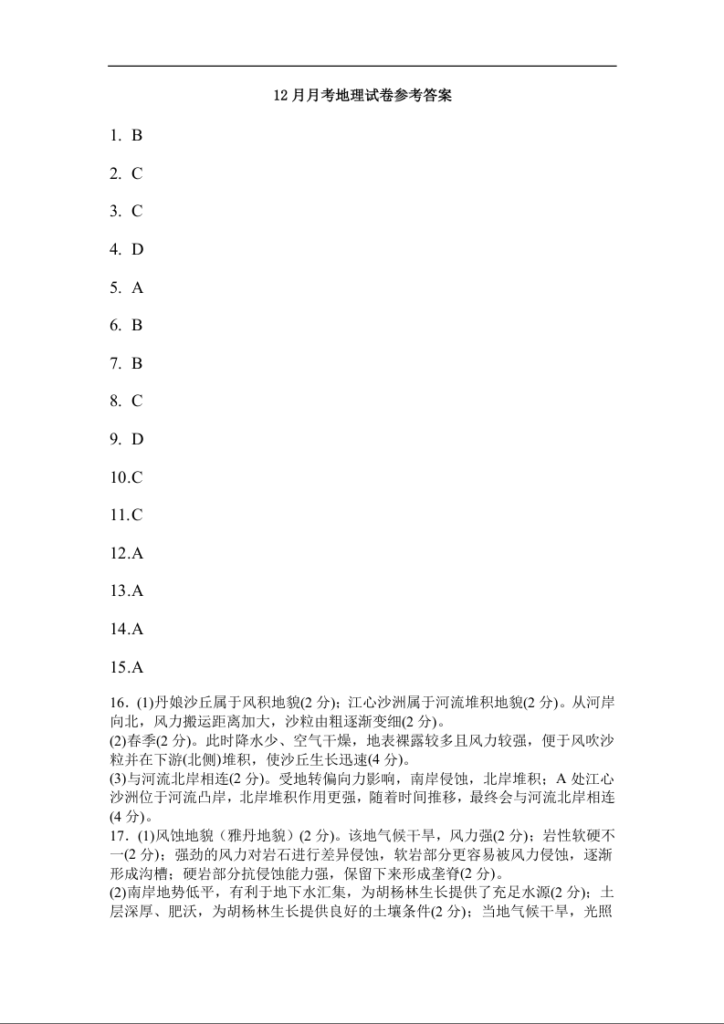 高一地理答案--湖北省十堰市普通高中教联体2025-2026学年高一上学期12月月考