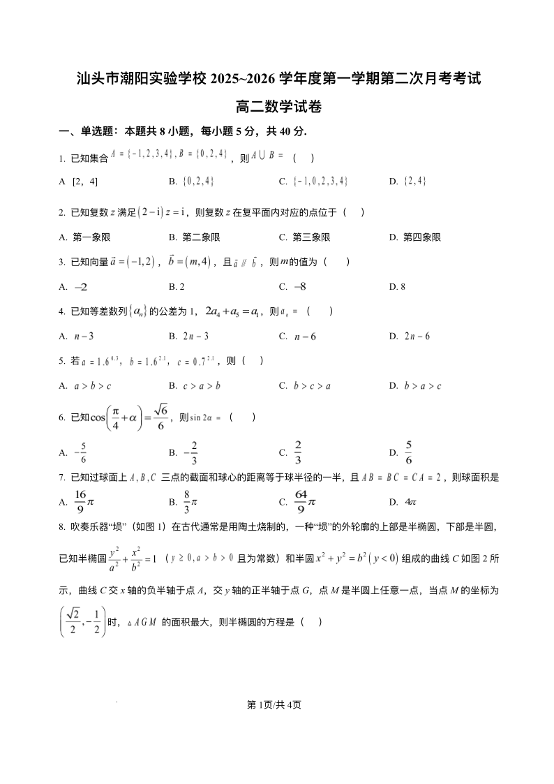 高二数学+答案--广东省汕头市潮阳实验学校2025-2026学年高二上学期12月月考