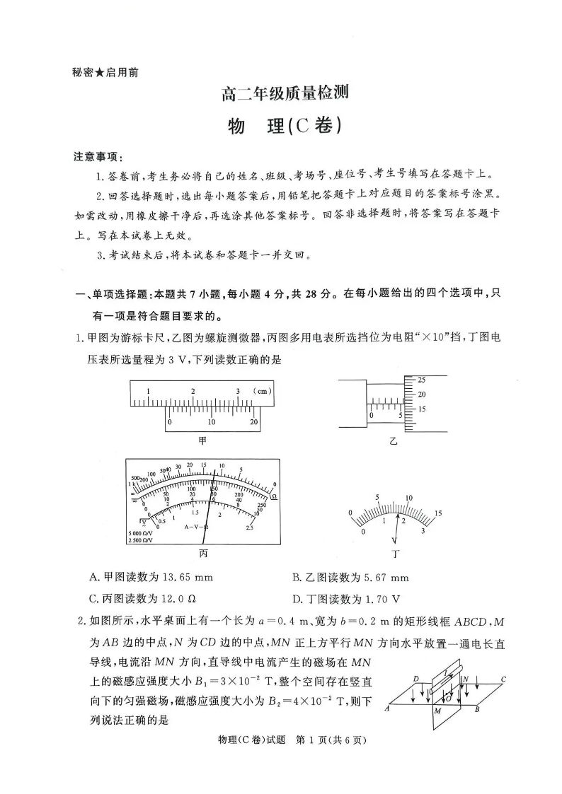 高二物理+答案--河南省青桐鸣2025-2026学年高二上学期1月月考