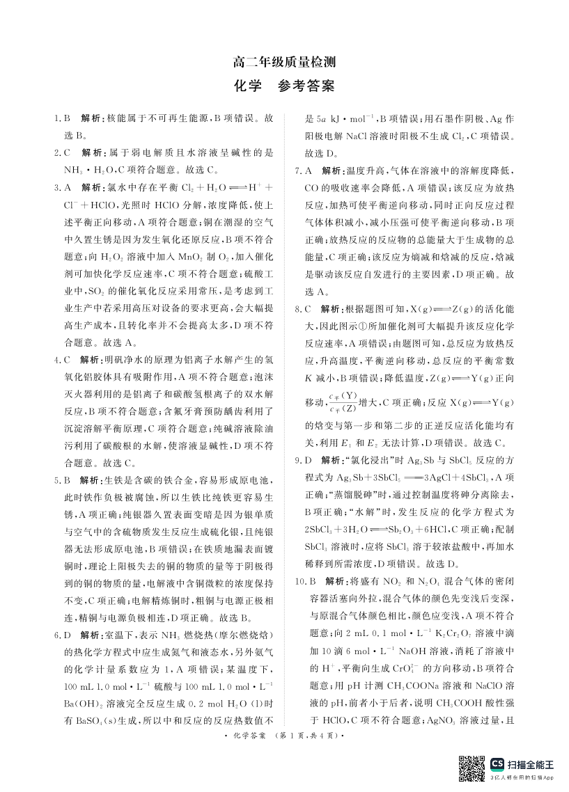 高二化学答案--河南省青桐鸣2025-2026学年高二上学期1月月考