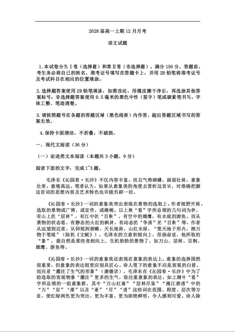 高一语文--四川省眉山市仁寿第一中学校(北校区)2025-2026学年高一上学期12月月考