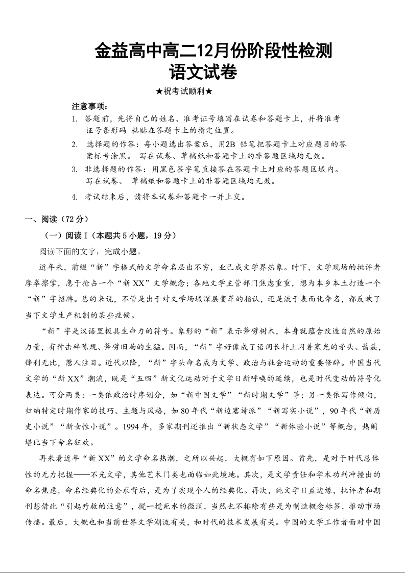高二语文--湖北省孝感市汉川市金益高级中学2025-2026学年高二上学期12月月考