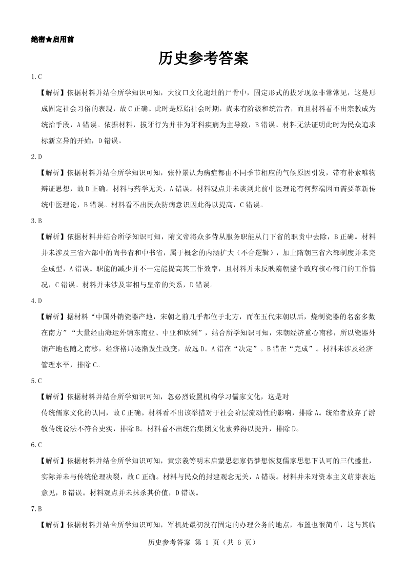 高三历史答案--山西省(三重教育)2023高三开学摸底考试