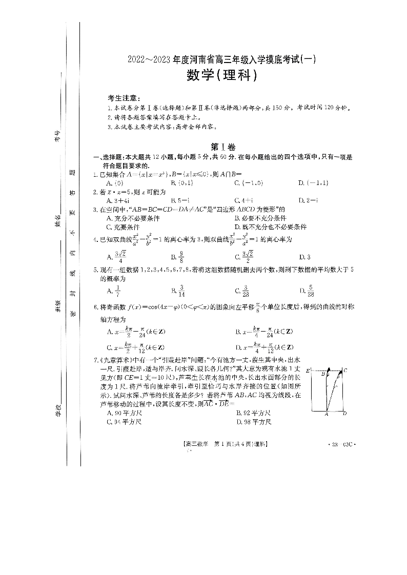 高三理科数学--河南省创新发展联盟2023高三上学期开学摸底考试