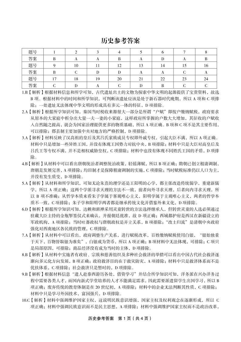 高三历史答案--安徽省蚌埠市2023高三第一次质量检查
