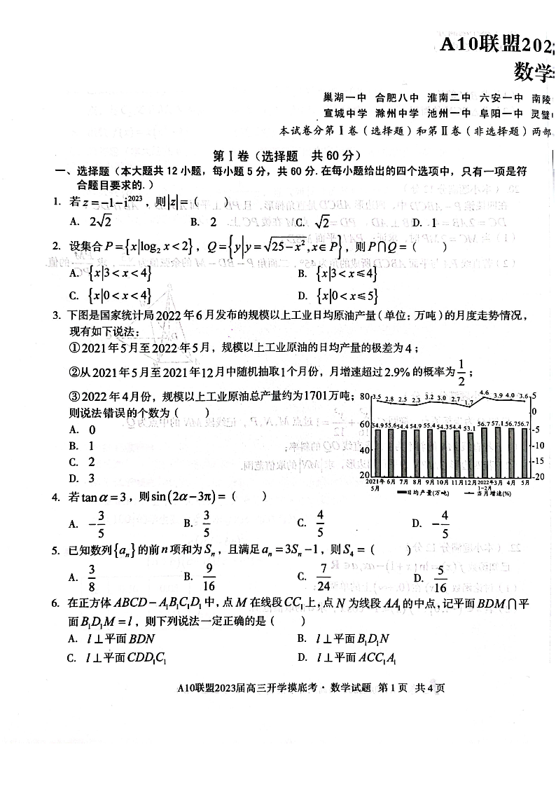 高三数学--安徽省A10联盟2023高三上学期开学考试8.29-30
