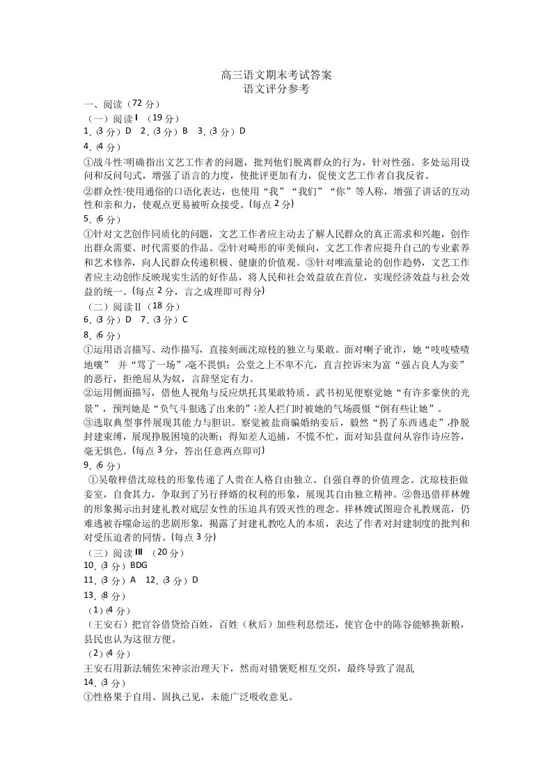 高三语文答案--黑龙江省哈尔滨市第六中学校202届高三上学期1月期末考试