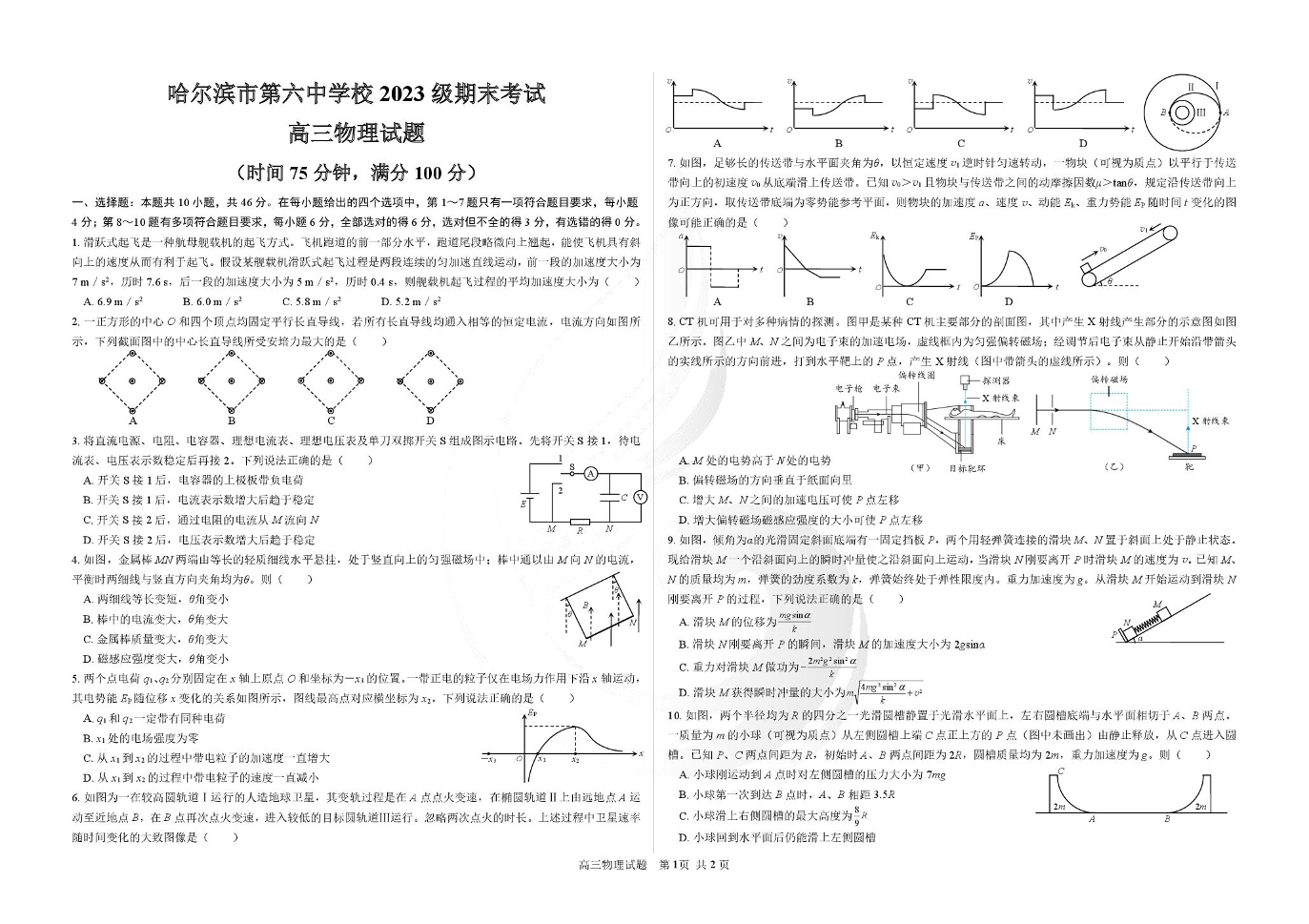 高三物理--黑龙江省哈尔滨市第六中学校202届高三上学期1月期末考试