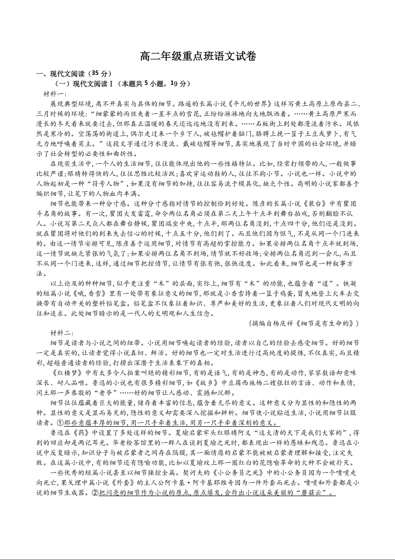 高二语文(重点班)+答案--江西省上饶市2025-2026学年高二上学期期中考试