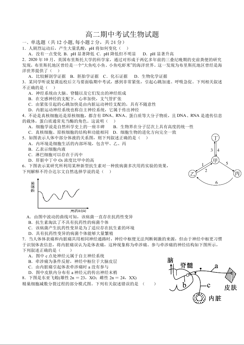 高二生物+答案--江西省上饶市2025-2026学年高二上学期期中考试