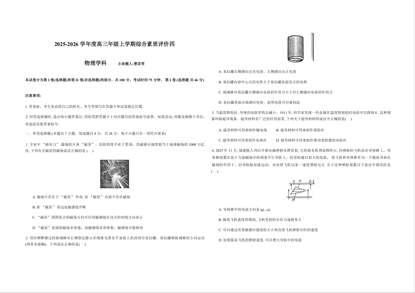 高三物理+答案--河北衡水中学2026届高三上学期12月月考