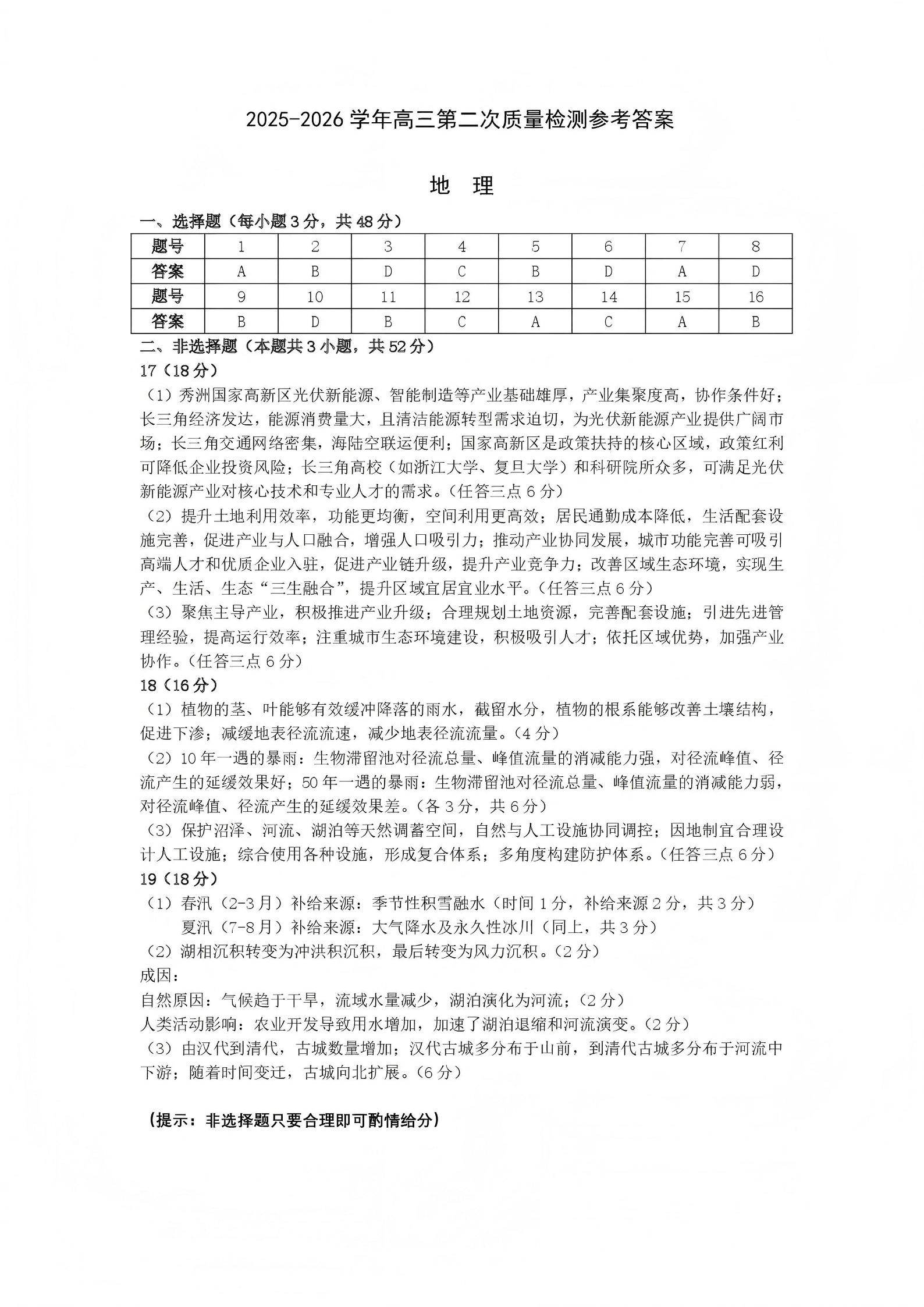 高三地理答案--河南省豫西北教研联盟(平许济洛)高三上学期1月质量检测