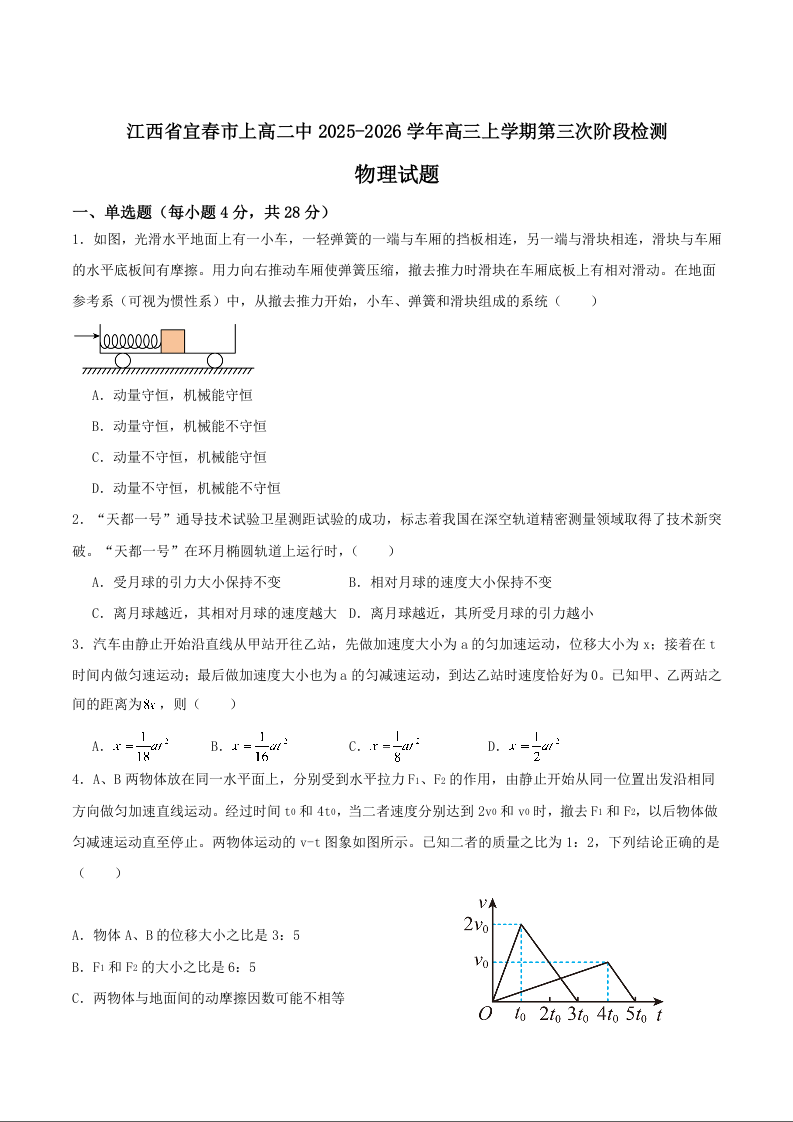 高三物理+答案--江西省上高二中2026届高三上学期第三次阶段检测