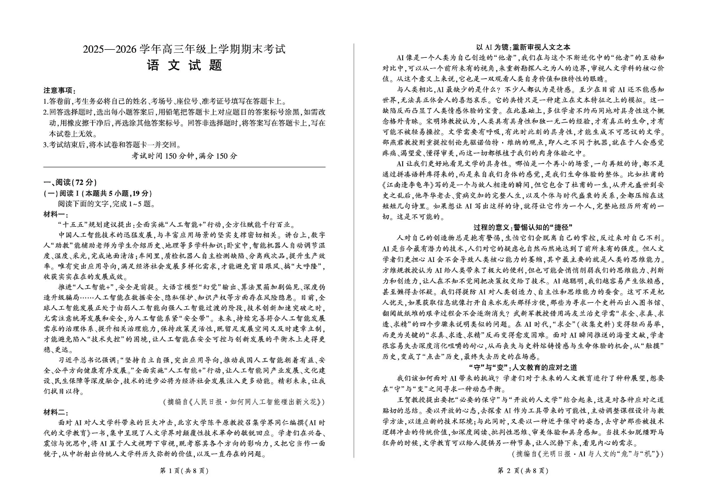 高三语文--百师联盟2026届高三上学期1月期末考试