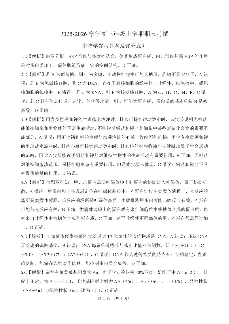 高三生物答案--百师联盟2026届高三上学期1月期末考试