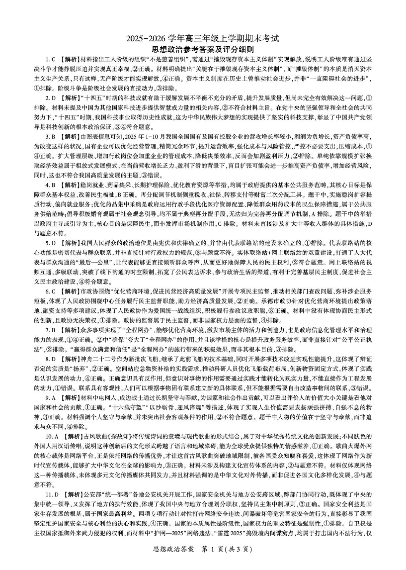 高三政治答案--百师联盟2026届高三上学期1月期末考试