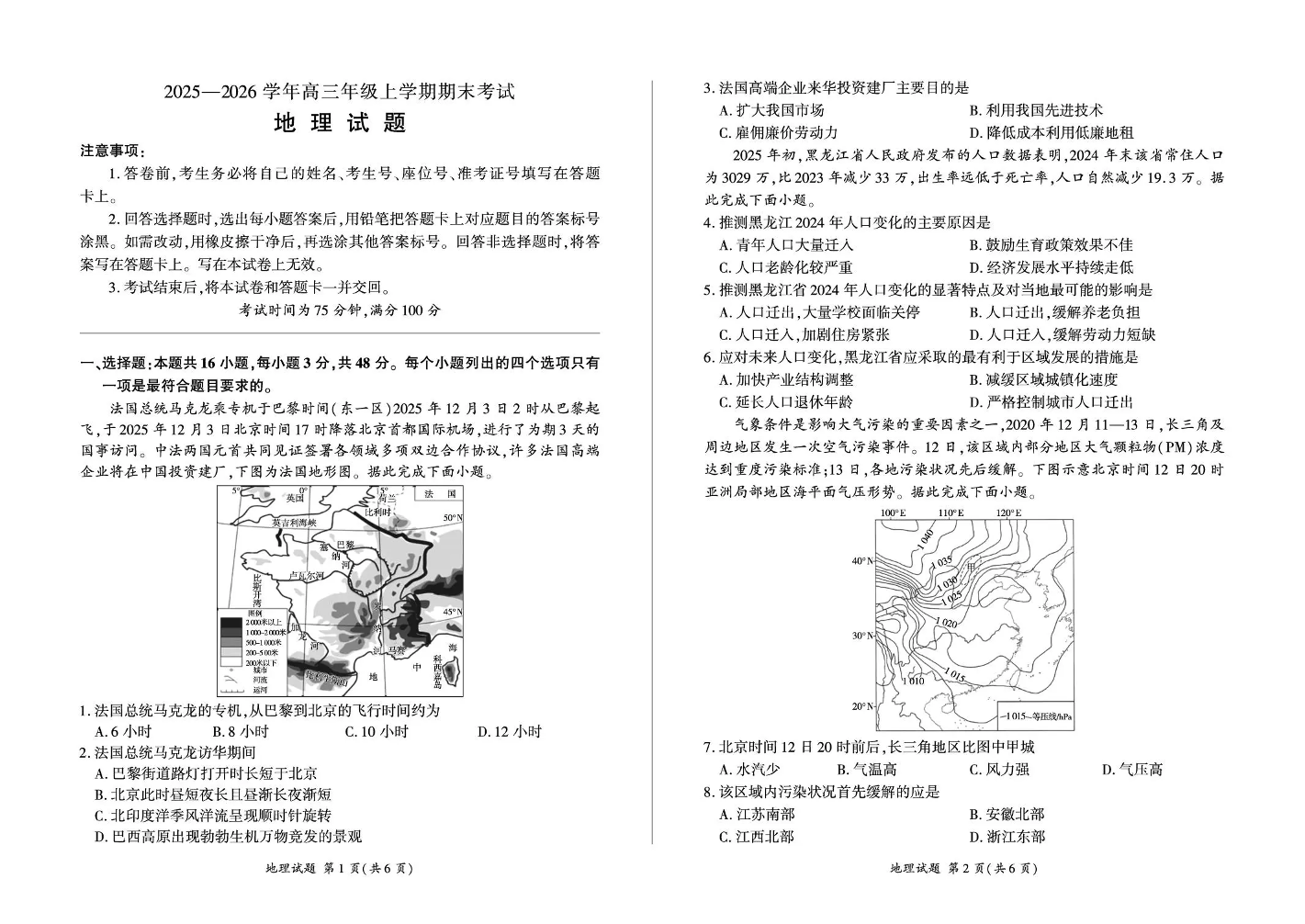 高三地理--百师联盟2026届高三上学期1月期末考试