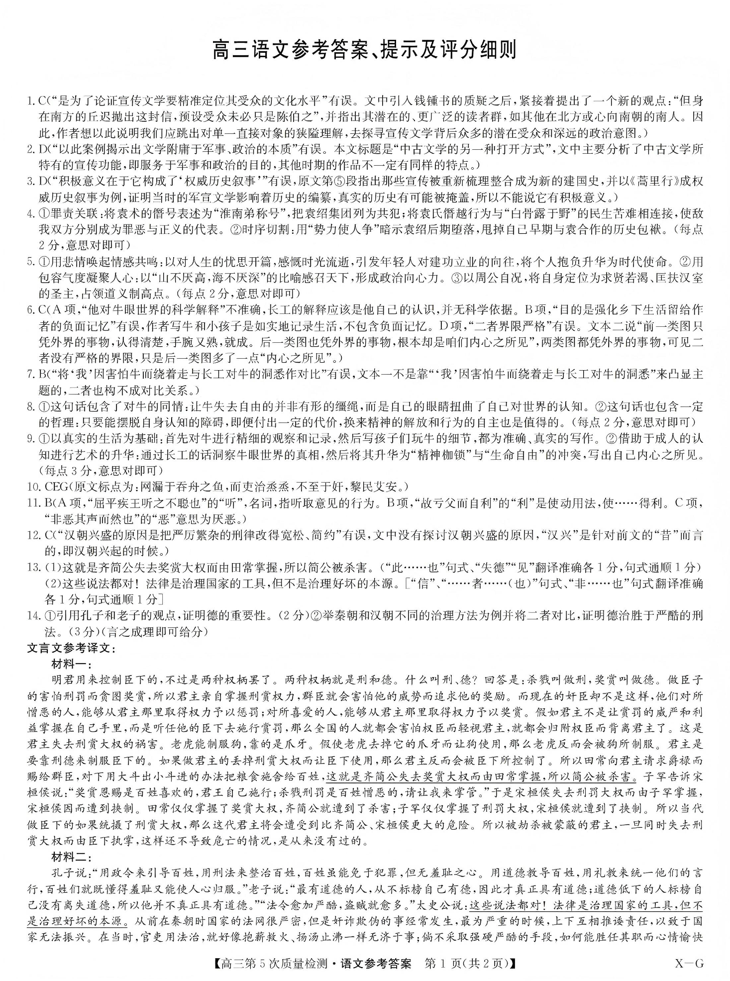 高三语文答案--九师联盟2026届高三上学期第五次质量检测(1月联考)