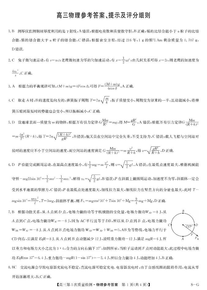 高三物理答案--九师联盟2026届高三上学期第五次质量检测(1月联考)