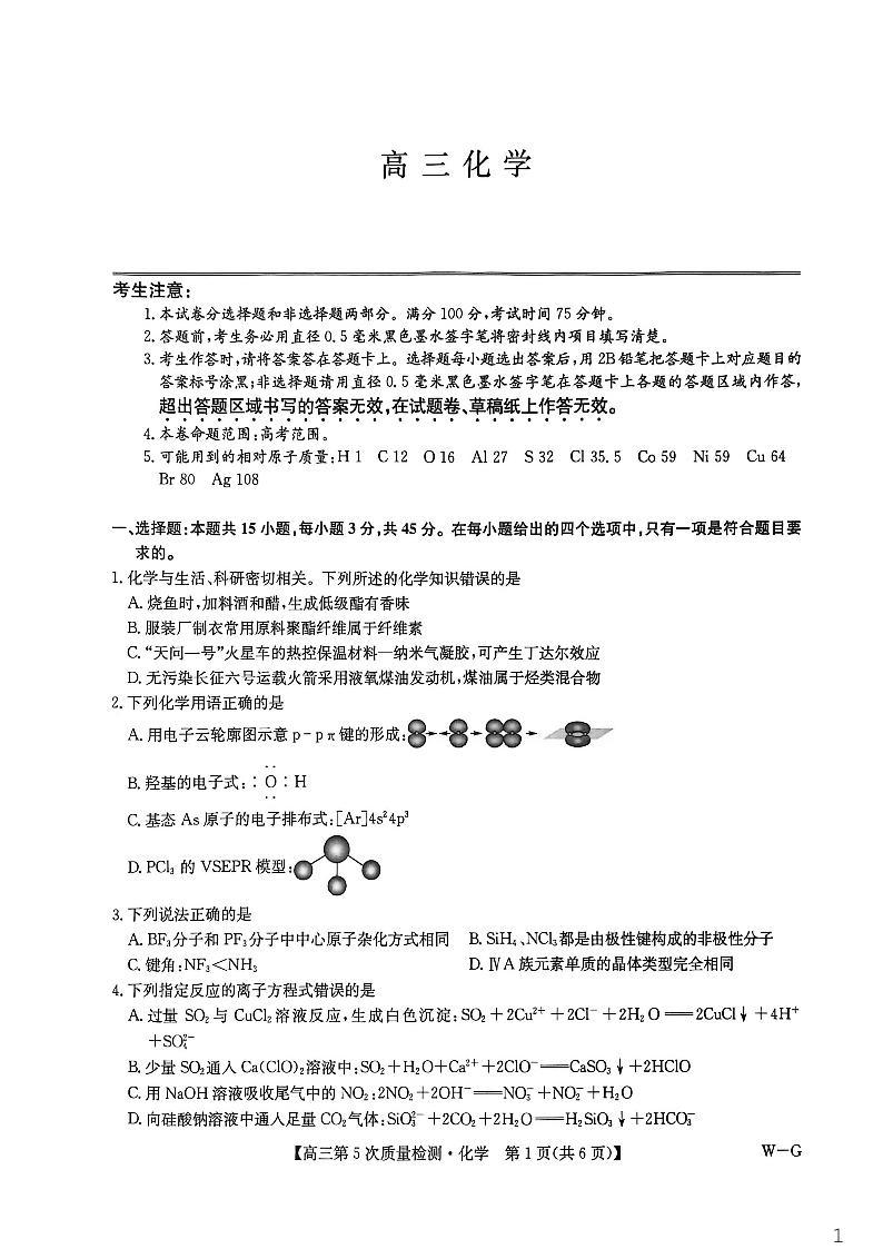 高三化学+答案--九师联盟2026届高三上学期第五次质量检测(1月联考)