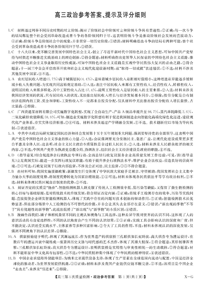 高三政治答案--九师联盟2026届高三上学期第五次质量检测(1月联考)