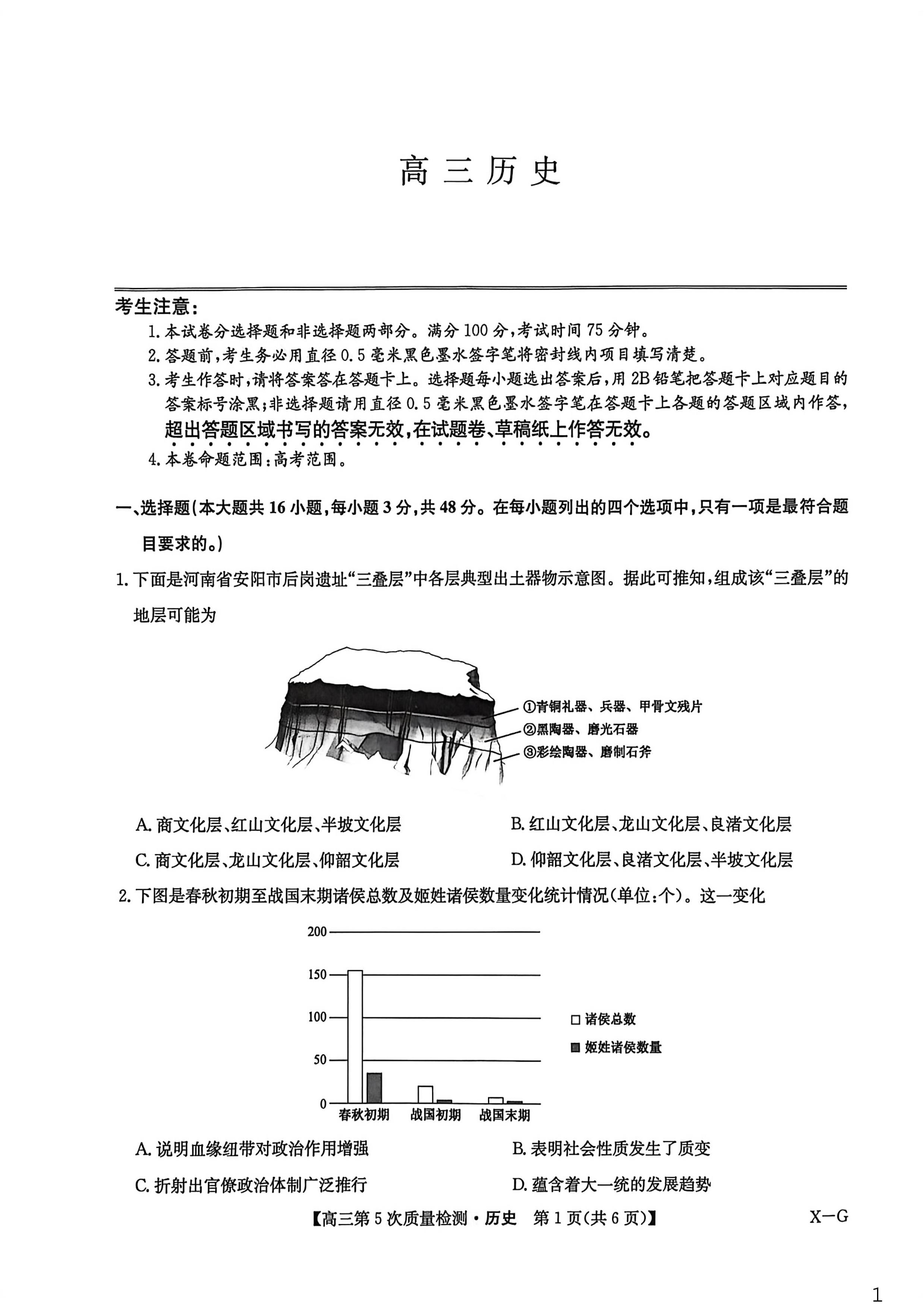 高三历史--九师联盟2026届高三上学期第五次质量检测(1月联考)