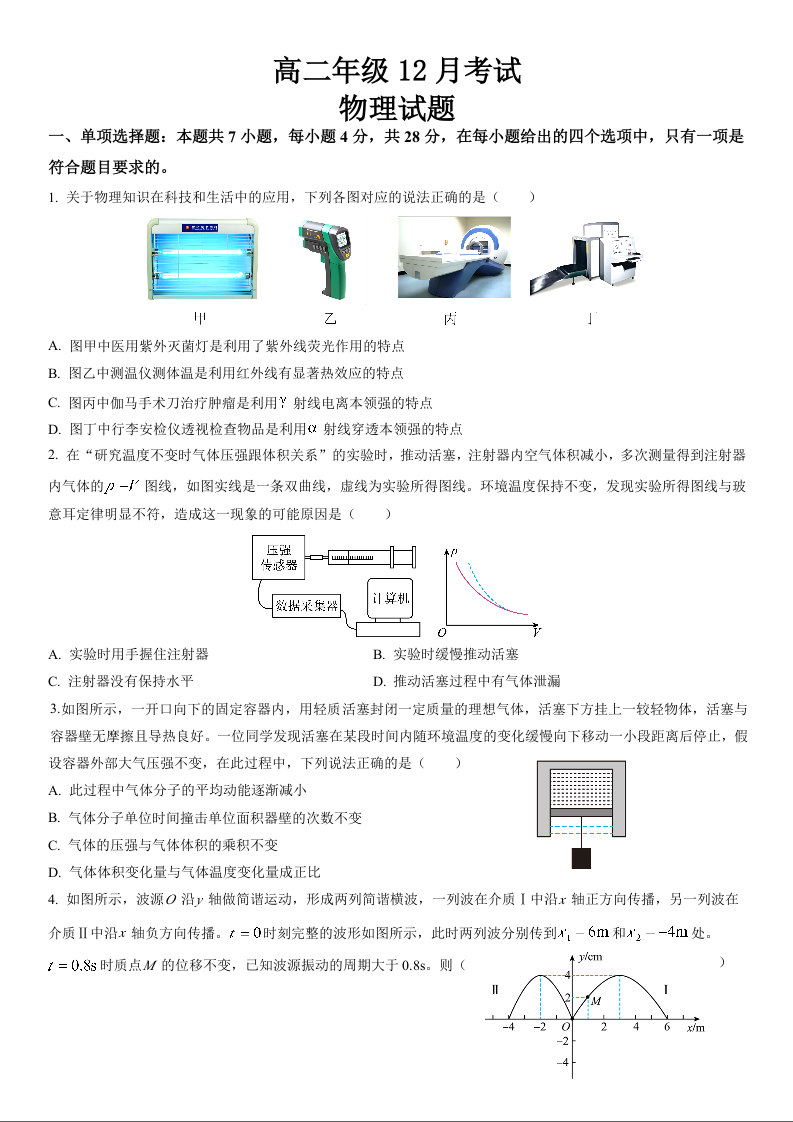 高二物理--河北省保定市部分高中2025-2026学年高二上学期12月月考