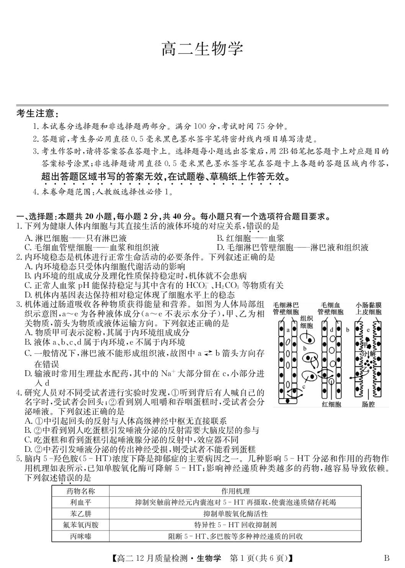 高二生物--河北省保定市部分高中2025-2026学年高二上学期12月月考