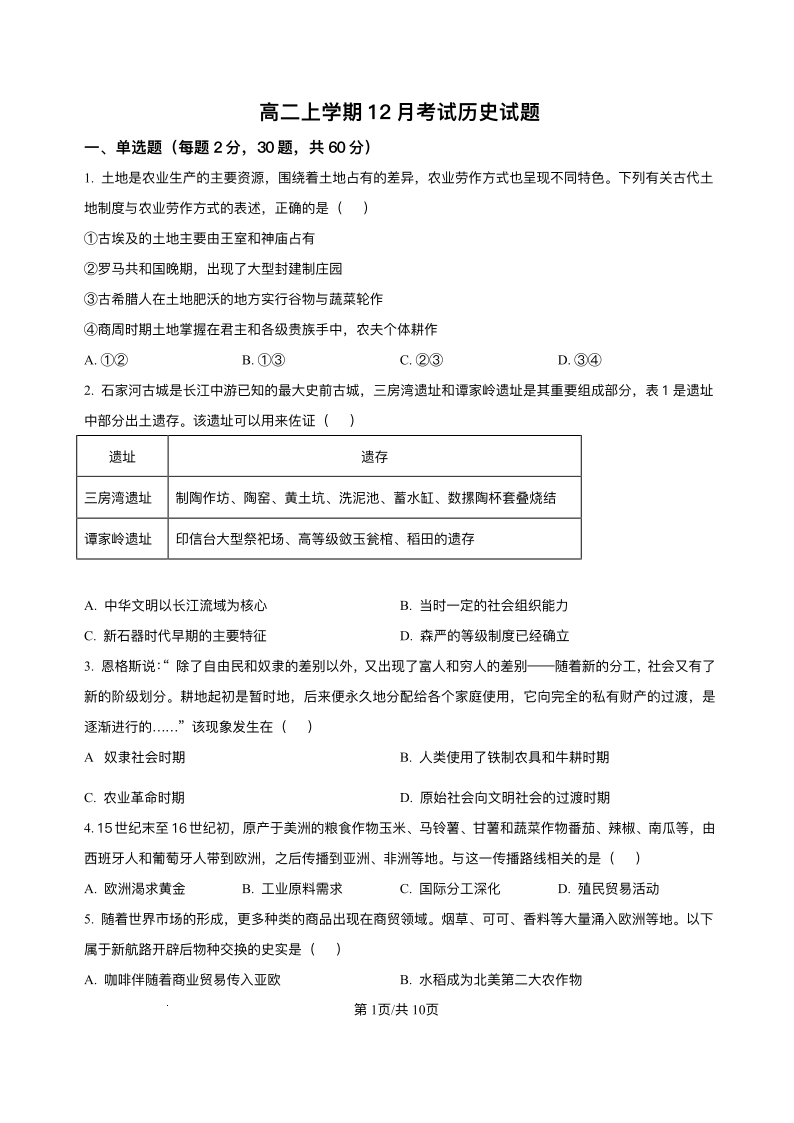 高二历史+答案--河北省保定市部分高中2025-2026学年高二上学期12月月考