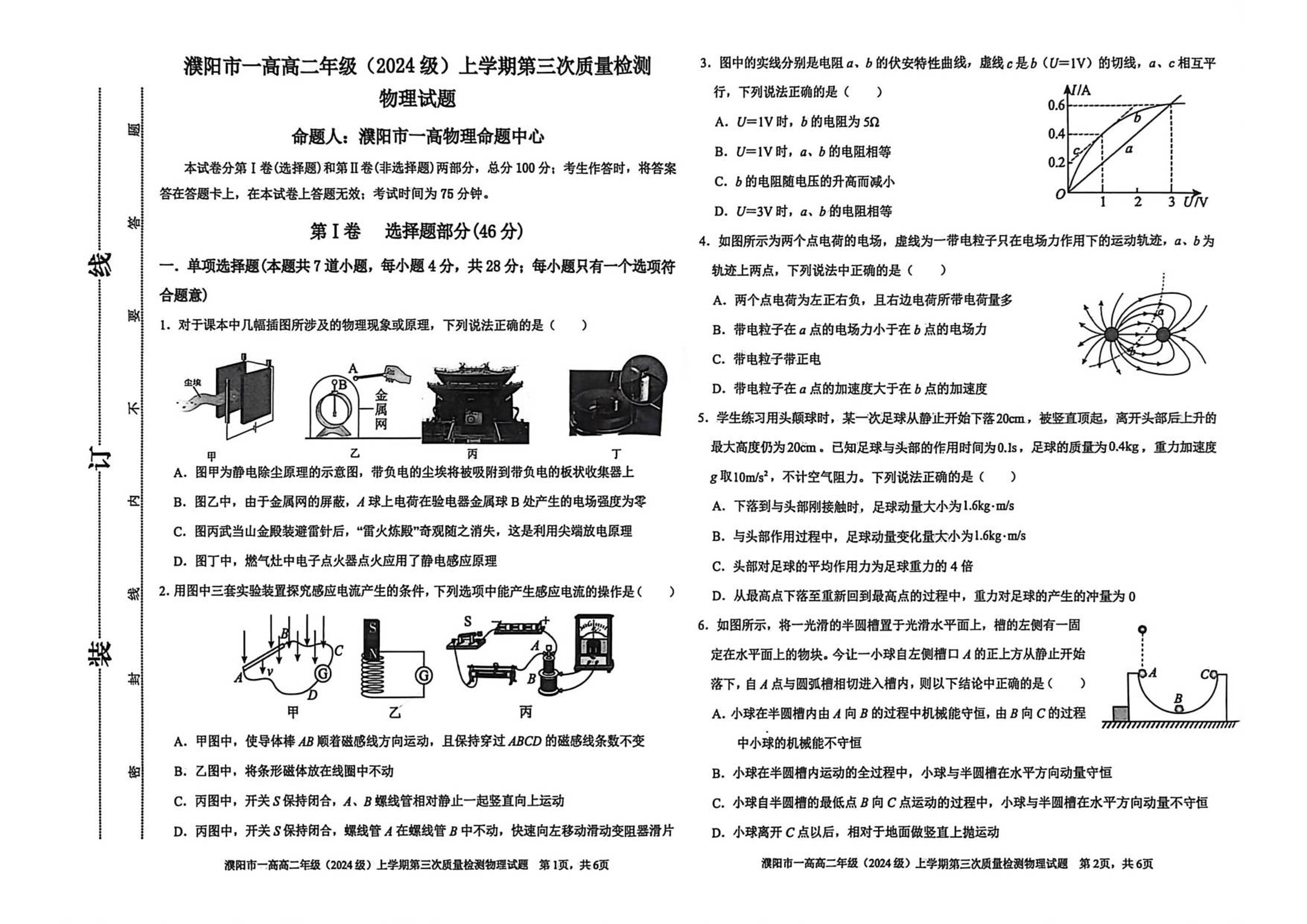 高二物理--河南省濮阳市第一高级中学2025-2026学年高二上学期1月月考