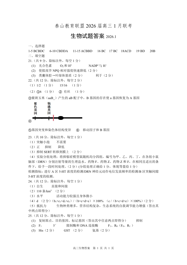 高三生物答案--山东省实验中学泰山联盟2026.1联考