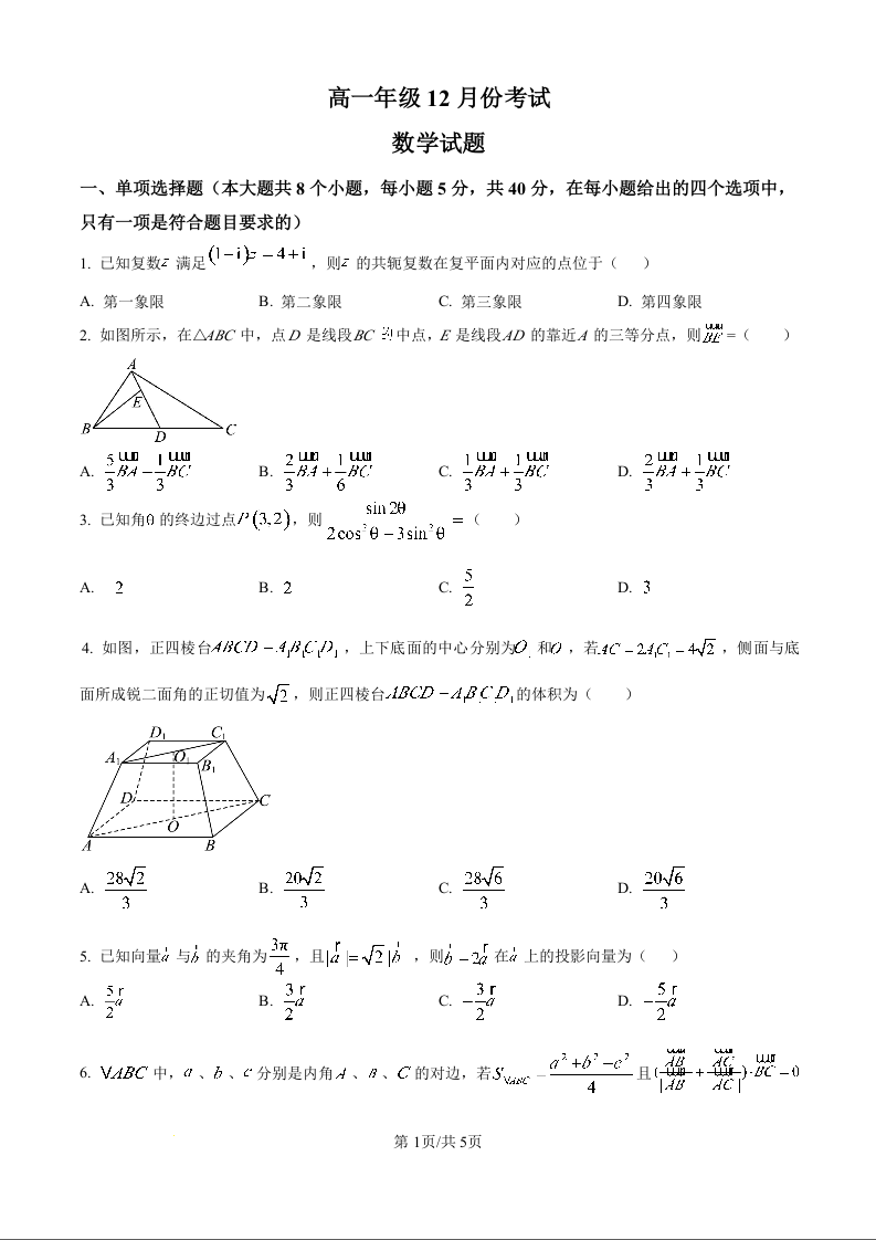 高一数学(原卷版)--河北省保定市部分高中2025-2026学年高一上学期12月月考
