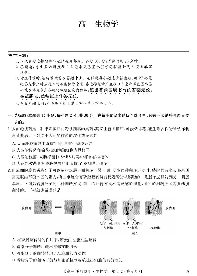 高一生物--甘肃省白银市靖远县第一中学2025-2026学年高一上学期12月月考