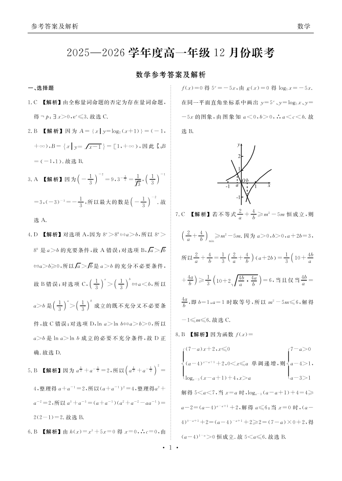 高一数学答案--广东省衡水金卷2025—2026学年度高一年级12月份联考