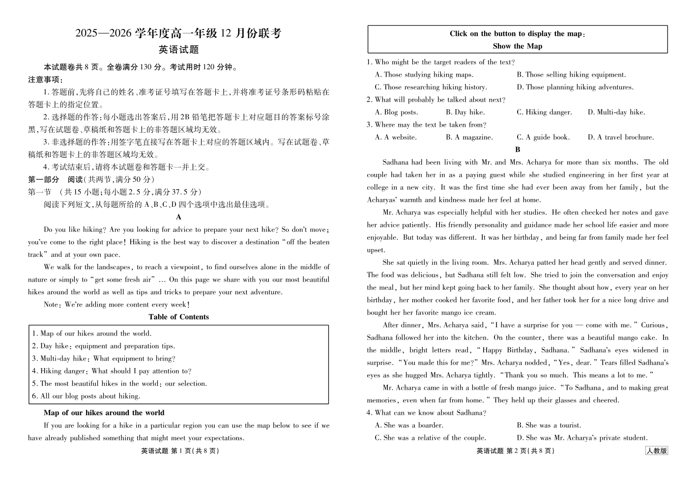 高一英语(人教版)--广东省衡水金卷2025—2026学年度高一年级12月份联考