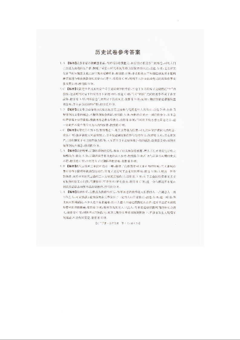高二历史答案--辽宁省抚顺市六校协作体2025-2026学年高二上学期期末联考