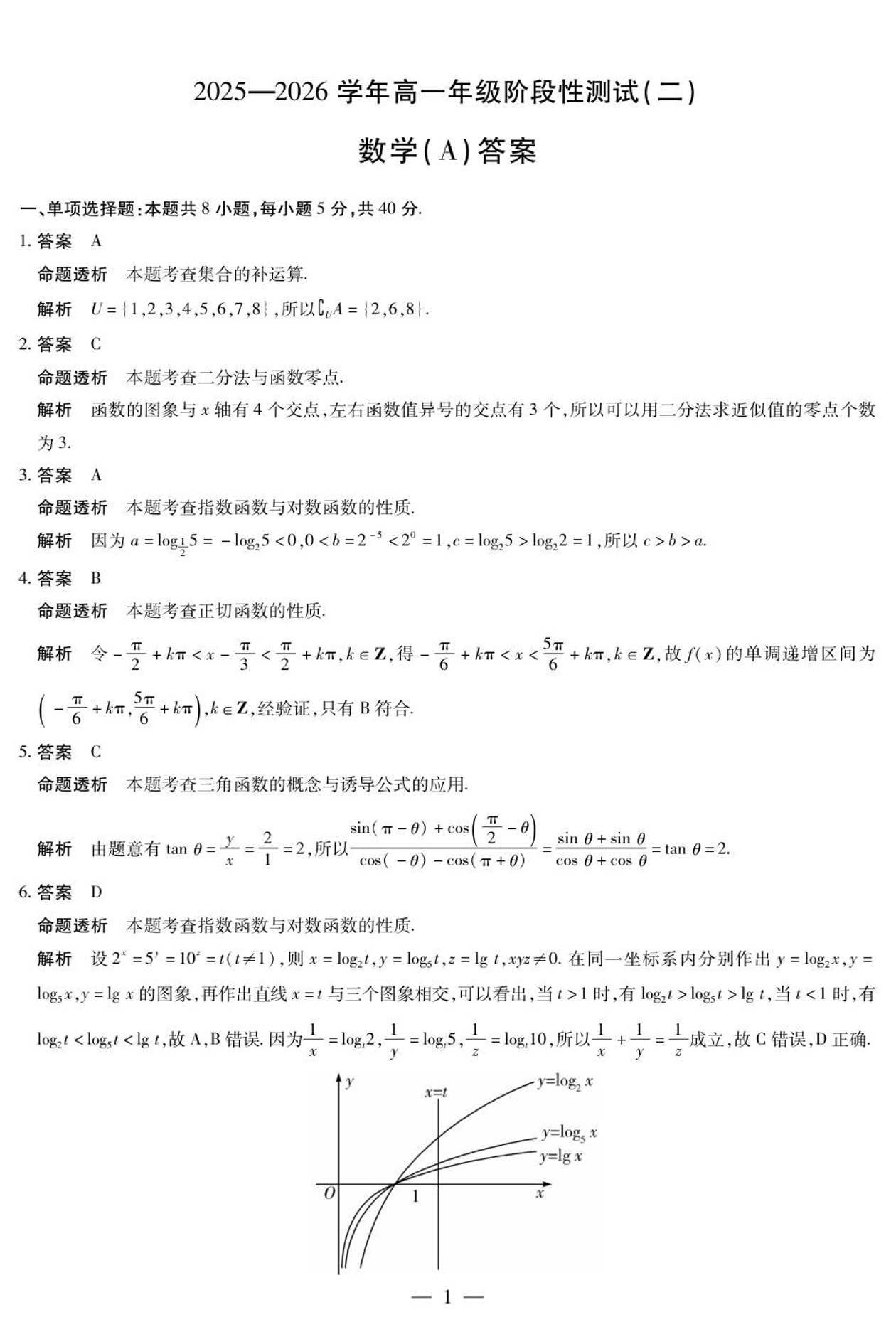 高一数学答案--河南省豫北名校2025-2026学年高一上学期阶段性测试(二)