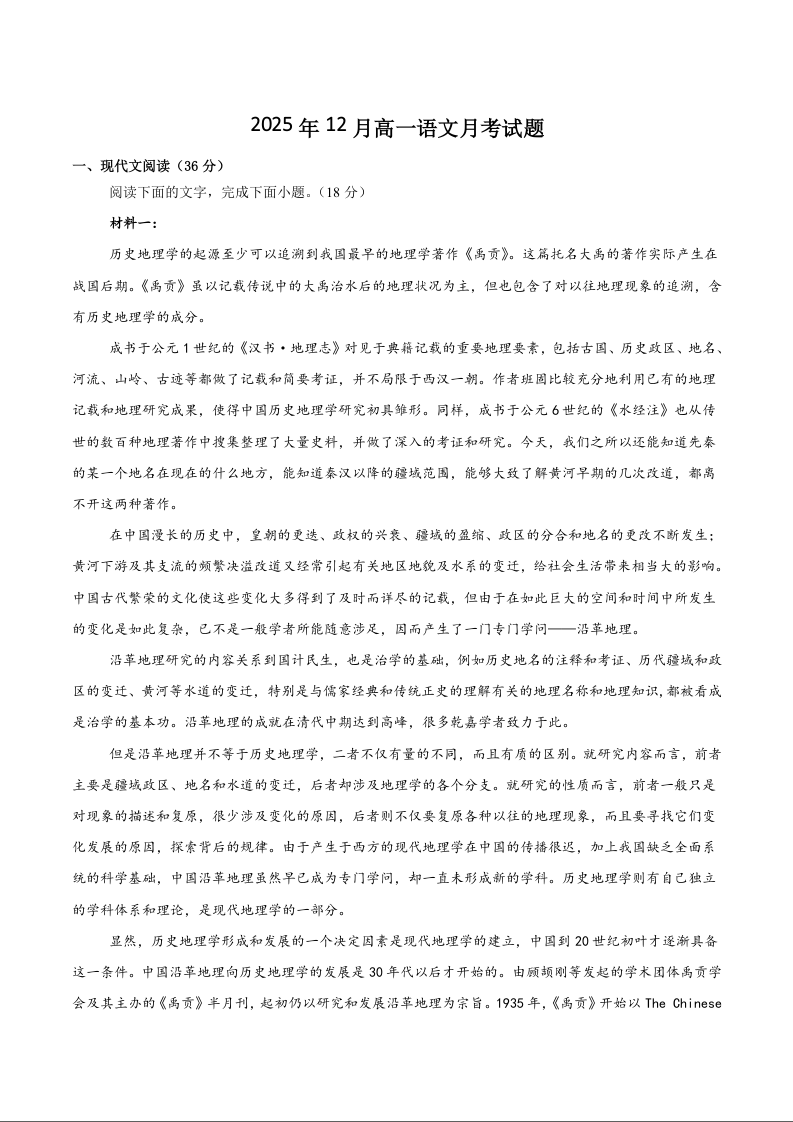 高一语文+答案--湖南省岳阳市汨罗市第二中学2025-2026学年高一上学期12月月考