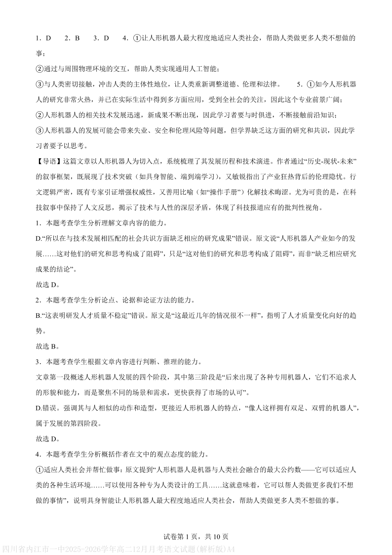 高二语文(精品解析版)--四川省内江市第一中学2025-2026学年高二上学期12月月考